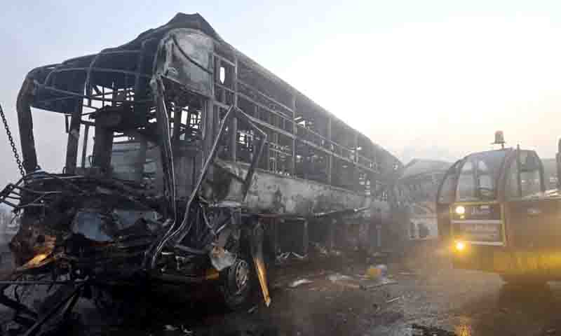 बसें जलकर राख हो गईं