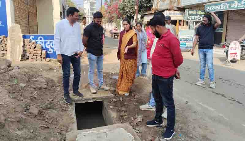 हनुमान चैक एवं आसपास के क्षेत्रों से वर्षा जल की समुचित निकासी सुनिश्चित करने हेतु चार प्रमुख नालों,नालियों का निर्माण किया जाना था। नपा अध्यक्ष भारती ठाकुर आज निर्माण कार्य देखने निकली। निर्माण कार्य अत्यंत धीमी गति से होने की वजह से तय समय पर नहीं हुआ। जलभराव की समस्या यथावत होने पर नपा अध्यक्ष ने निर्माण कंपनी को फटकार लगाई।