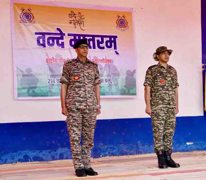 राष्ट्रमत न्यूज,बीजापुर(ब्यूरो)। भारत के राष्ट्रीय गीत वंदे मातरम के 150 वर्ष पूर्ण होने के उपलक्ष्य में 214 वाहिनी सीआरपीएफ मुख्यालय परिसर दुगोली, बीजापुर में आज भव्य सामूहिक गायन कार्यक्रम का आयोजन किया गया। यह आयोजन देश के गौरवशाली इतिहास एवं सामूहिक चेतना को समर्पित राष्ट्रव्यापी समारोहों की श्रृंखला का हिस्सा रहा।