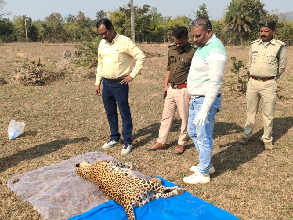 मगरदर्रा में एक किमी दूर खेत में वन्य प्राणी तेंदुए मृत अवस्था में देखा गया। ग्रामीणों की सूचना पर वन परिक्षेत्र अधिकारी शिवमपुरी गोस्वामी सहित अन्य अमला मौके पर पहुंचा। मृत अवस्था में तेंदुए को देख डीएफओ और तहसीलदार को भी जानकारी से अवगत कराया गया साथ ही पीएम के लिए पशु चिकित्सक भी पहुंचे और सभी की मौजूदगी में पीएम कर अंतिम अग्नि संस्कार किया गया। प्रथम दृष्टया तेंदुए की मौत गिरने से चोट लगना या फिर किसी कठोर वस्तु से टकराने के कारण उसके सिर और नाक से खून दिखाई दिया है।