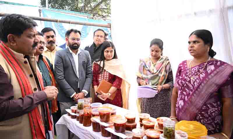 कार्यक्रम में बीजापुर की ग्रामीण महिला स्व सहायता समूहों द्वारा अपने उत्पादों की प्रदर्शनी भी लगाई थी। जिसका अवलोकन करते हुए उपमुख्यमंत्री शर्मा ने उनके खाद्य उत्पादों का भी स्वाद लिया और वनोपजों के बेहतर प्रसंस्करण और बाजार उपलब्धता पर चर्चा की। इस दौरान एडीजी नक्सल आपरेशन विवेकानंद सिन्हा,पंचायत एवं ग्रामीण विकास विभाग के सचिव भीम सिंह, बस्तर कमिश्नर डोमन सिंह आईजी सुंदरराज पी एवं संचालक अश्विनी देवांगन, कलेक्टर संबित मिश्रा, डीएफओ रंगानाथन रामाकृष्णन वाय सीईओ जिला पंचायत नम्रता चौबे सहित ग्रामों के समाज प्रमुख एवं बड़ी संख्या में ग्रामीण उपस्थित रहे।
