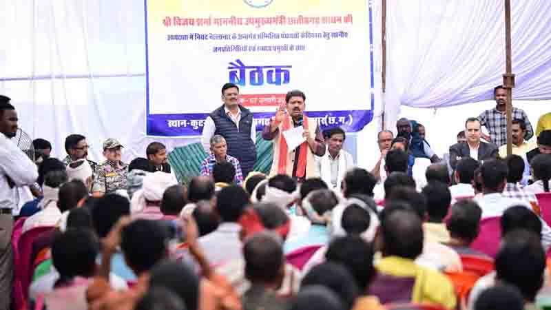 राष्ट्रमत न्यूज,बीजापुर(ब्यूरो)। उपमुख्यमंत्री एवं गृह मंत्री विजय शर्मा आज बीजापुर जिले के अतिसंवेदनशील ग्राम कुटरू पहुंचे, जहां उन्होंने नियद नेल्ला नार के अन्तर्गत सम्मिलित पंचायतों के विकास हेतु स्थानीय जनप्रतिनिधियों एवं समाज प्रमुखों के साथ बैठक की। इस बैठक में बीजापुर जिले के विभिन्न ग्राम पंचायतों से आये ग्रामीण जनप्रतिनिधि एवं समाज प्रमुख गायता, सिरहा, पुजारी, बैगा आदि शामिल हुए।