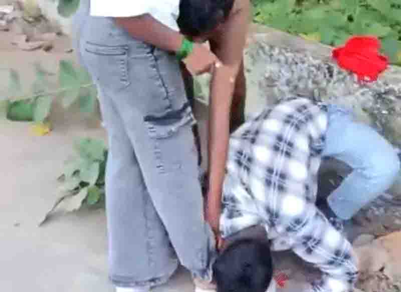 राष्ट्रमत न्यूज,रायपुर(ब्यूरो)। रायपुर में हिस्ट्रीशीटर विक्की खोचड़ अपने साथियों के साथ रानू सिंह नाम के युवक की राॅड से बेहरमी से पिटाई कर रहा है। विक्की की पत्नी और कुछ लड़के भी मौजूद हैं। विक्की अपनी पत्नी के पैर भी रानू सिंह से जबरिया चुमवा कर माफी मंगवाता है। और रानू सिंह लगातार माफी मांग रहा है। आरोपी पिस्टर दिखाकर उसे धमका रहा है। यह घटना सिविल लाइन थाना क्षेत्र के न्यू शांति नगर स्थित श्मशान घाट के पास की है।