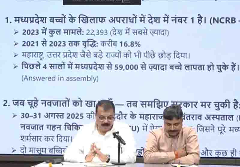 राष्ट्रमत न्यूज,नई दिल्ली(ब्यूरो)। जहरीली कोल्ड्रिफ कफ सिरप से बच्चों की मौत पर मध्य प्रदेश के नेता प्रतिपक्ष उमंग सिंघार और राजस्थान के नेता प्रतिपक्ष टीकाराम जूली ने दिल्ली में पार्टी मुख्यालय में संयुक्त प्रेस कान्फ्रेंस की। प्रेस कान्फ्रेंस में मध्य प्रदेश के नेता प्रतिपक्ष उमंग सिंघार ने राज्य के सीएम पर सवाल उठाते हुए कहा कि जब प्रदेश में बच्चे मर रहे थे तब मुख्यमंत्री काजीरंगा पार्क में हाथी देख रहे थे। यह कैसे मुख्यमंत्री हैं।सिंघार ने उप मुख्यमंत्री राजेन्द्र शुक्ला से पूछा,तमिलनाडु की कंपनी के साथ आपके क्या संबंध हैं। आपने किस कारण उसके पक्ष में बयान दिया। इस पर मुख्यमंत्री जी क्यों चुप रहे देश को बताएं।